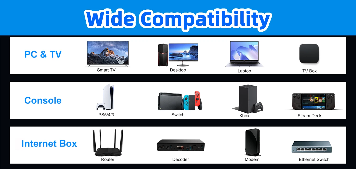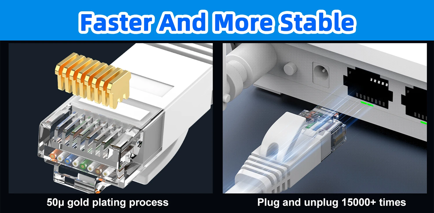 Cat6 ethernet cable connects all Gigabit LAN devices—PCs, servers, printers, routers, and more. Supports Gigabit 1000 BASE-T, 100 BASE-T, and 10 BASE-T, meeting Category 6 standards (TIA/EIA 568-C.2)