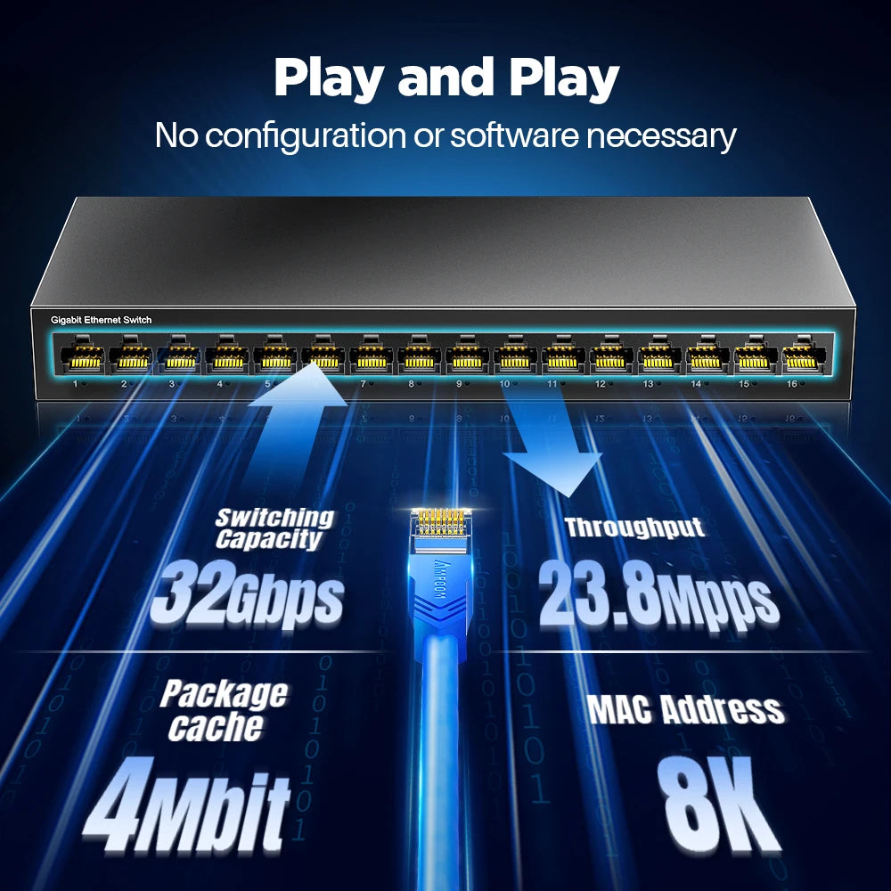 Ethernet: 16*10/100/1000Mbps RJ45 Ports