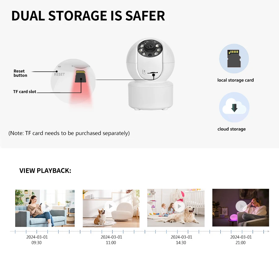 Insert a TF card of up to 128GB (TF can be selected as needed) to help you save video content.