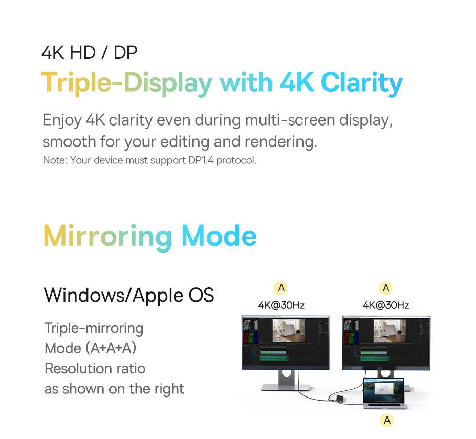 ✔Triple-display: 4K@60Hz clarity (For Windows)