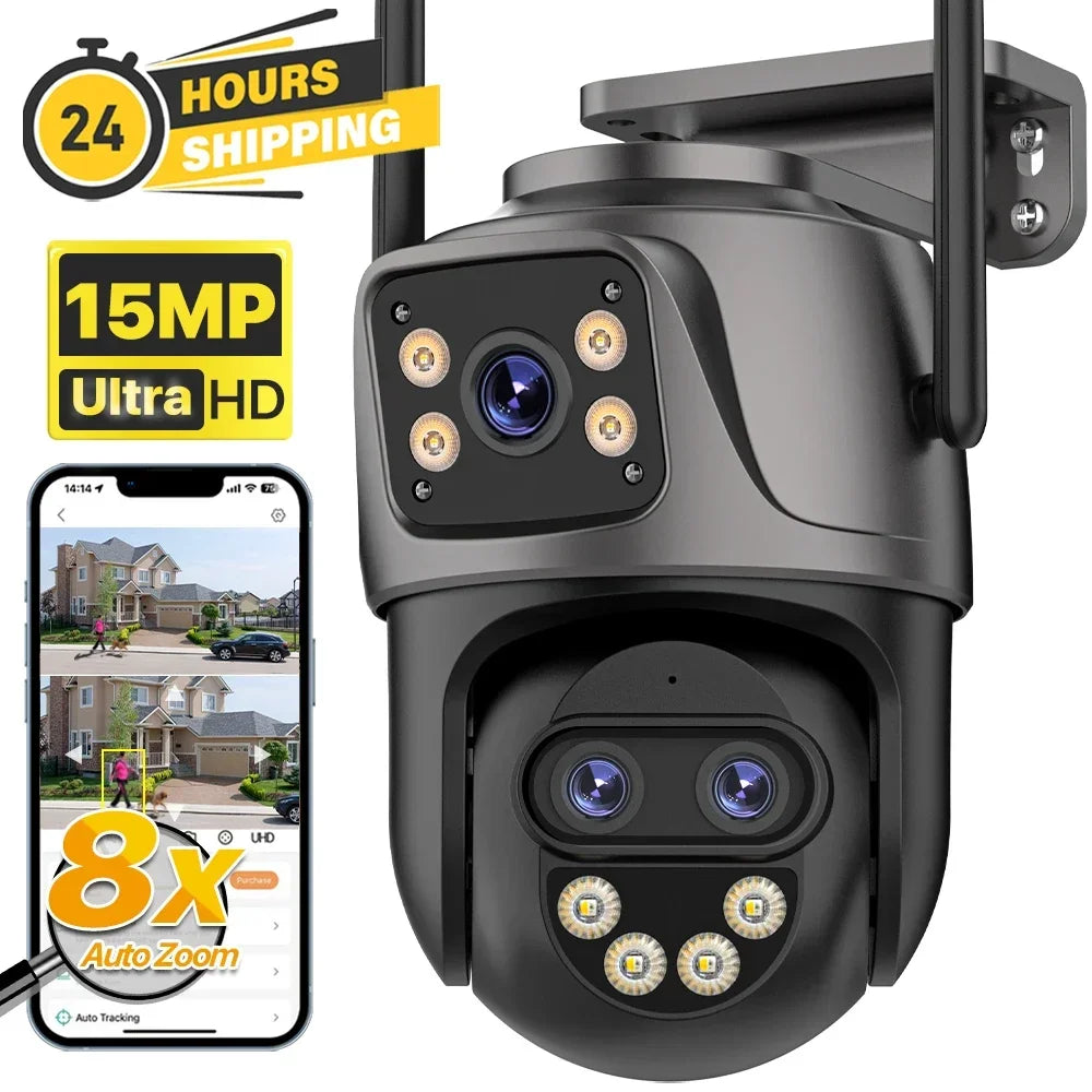 3-Lens with 2-Screen Auto Tracking PTZ WIFI Camera