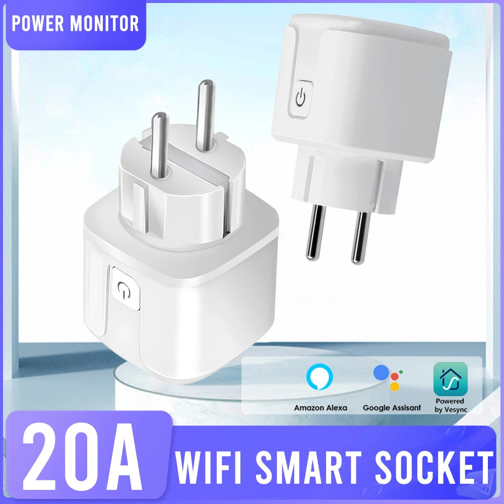 【EU Plug WiFi20A Socket with Power Monitoring on Vesync APP】Manage your devices efficiently and keep track of their power consumption with this EU plug WiFi20A socket that offers power monitoring capabilities through the Vesync APP.