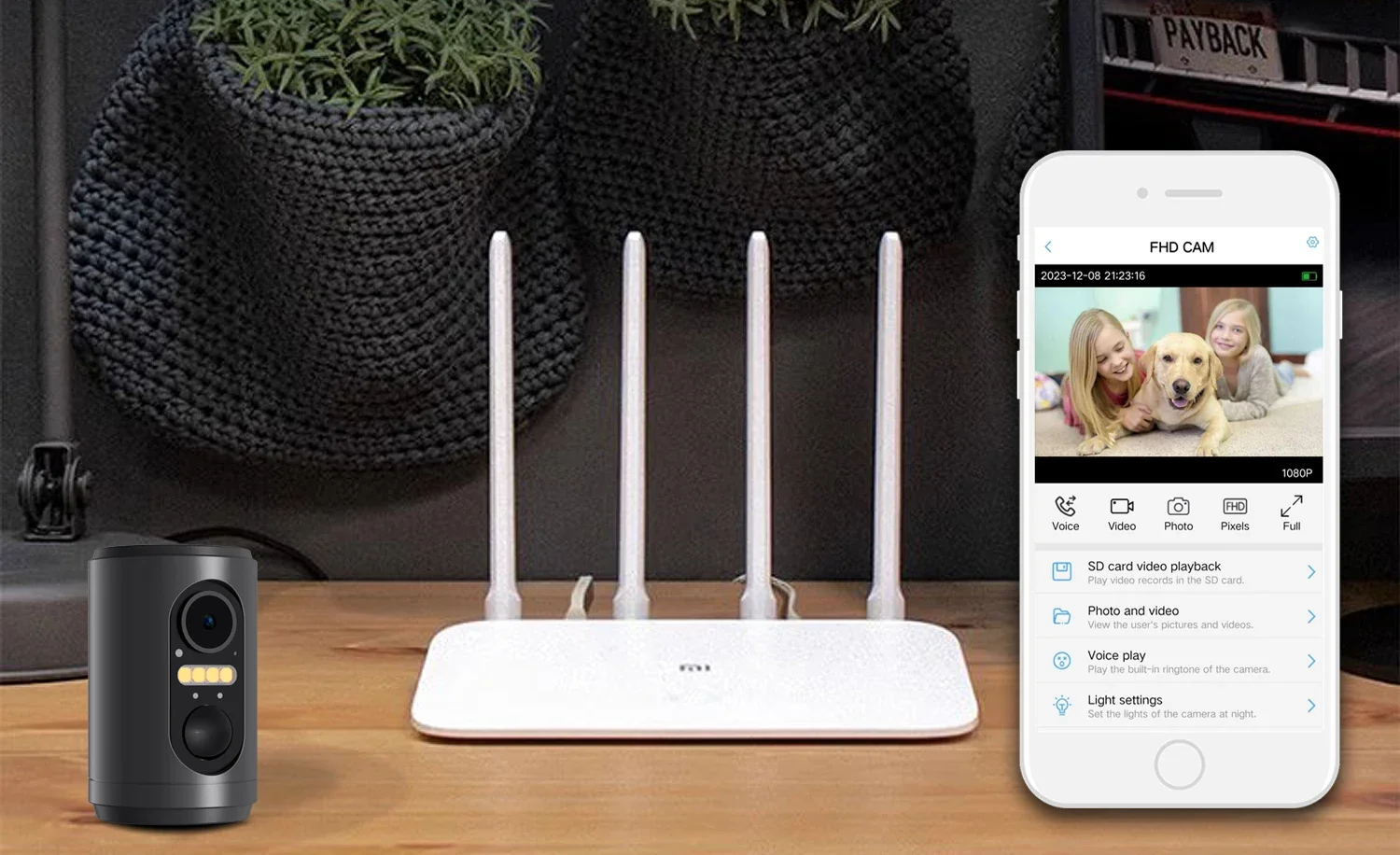 This is a wifi Version camera. when someone enters the monitoring area, the camera starts and records video and sends alarm information to the user's cell phone.