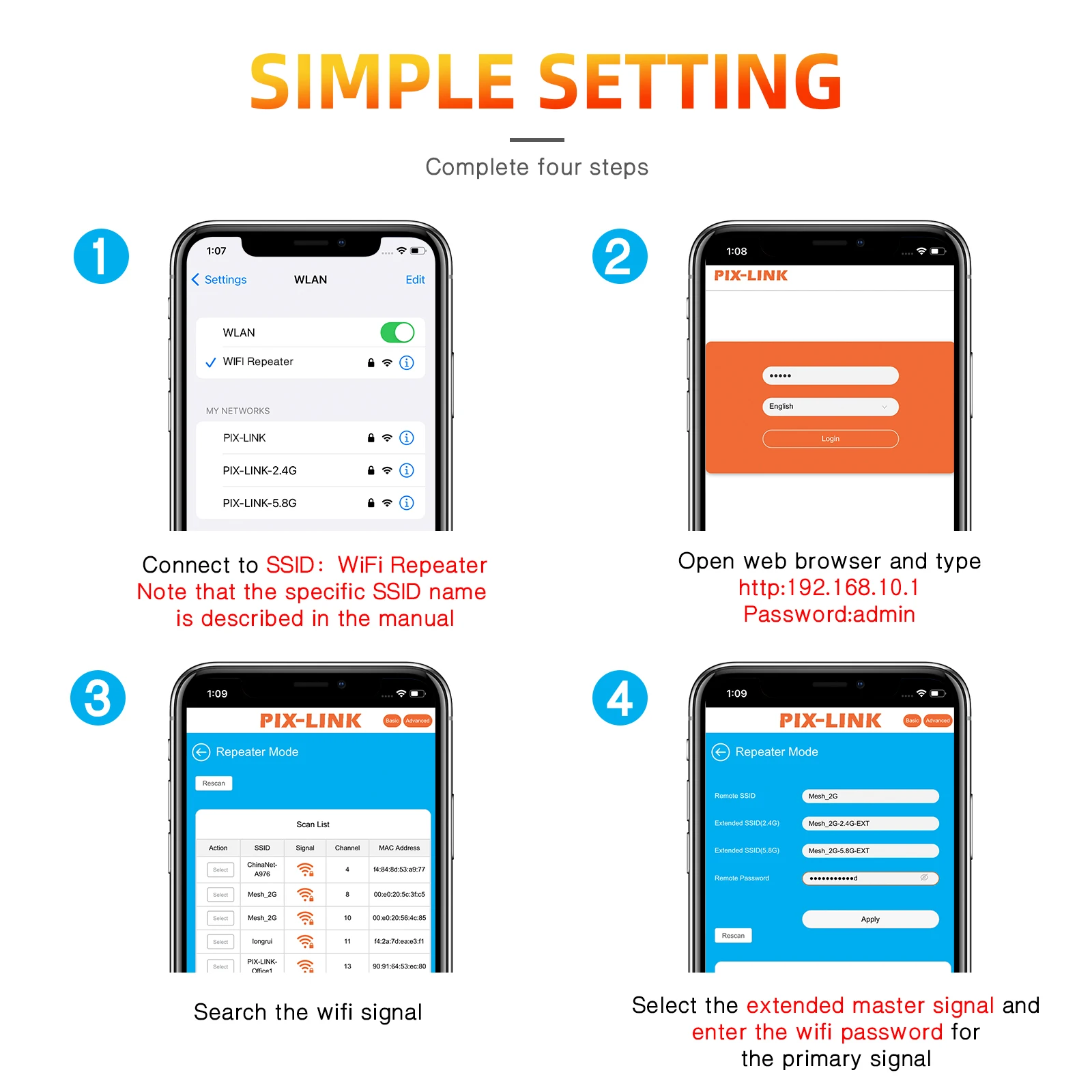 • Easy to Use :The PIXLINK brand ensures user-friendly design and functionality, making this WiFi Extender easy to set up and manage.