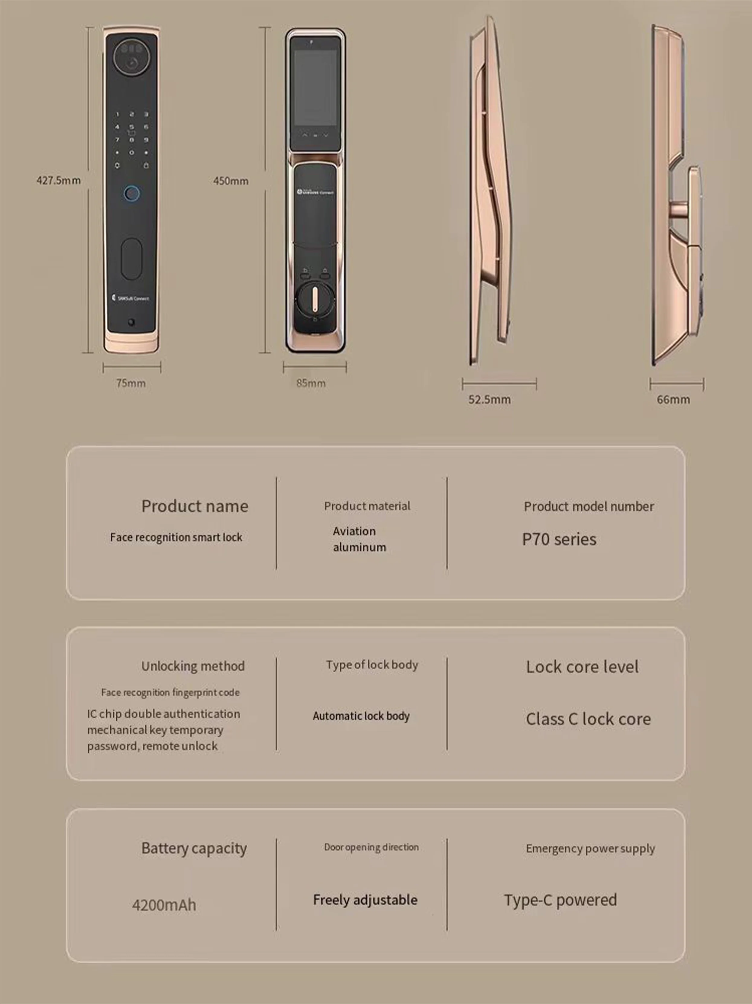 fingerprint/face/pas Camera display: passive visual interc om, |