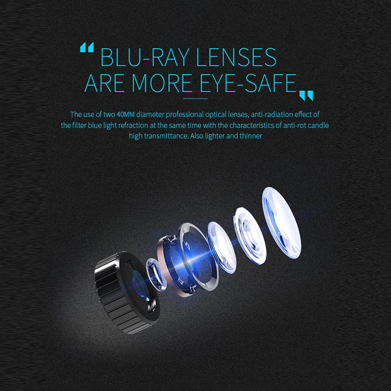 The use of two 40MM diameter prefessional optical lenses,anti-radiation effect of the filter blue light refraction at the same time with the characteristics of anti-rot candle high transmittance.Also lighter and thinner