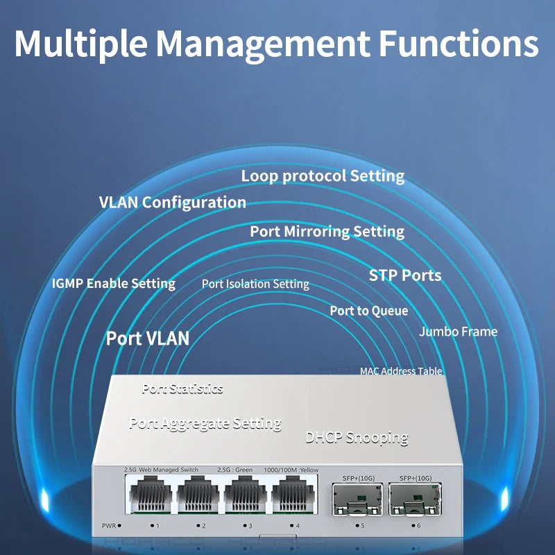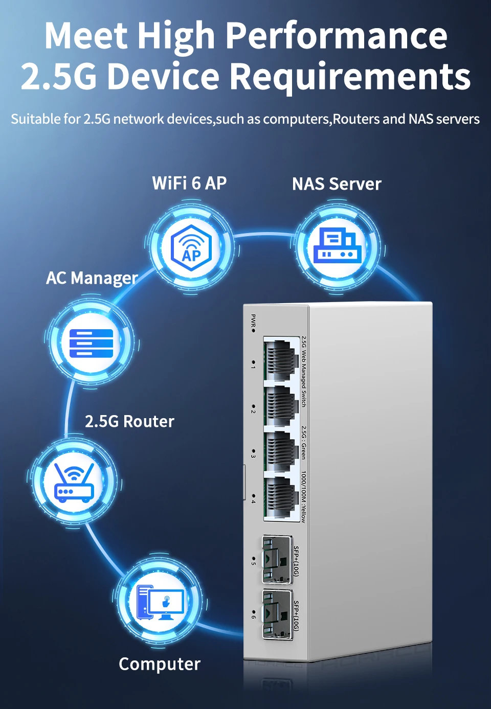 SFP+ Port: Supports 10M/100M/1G/2.5G/10G