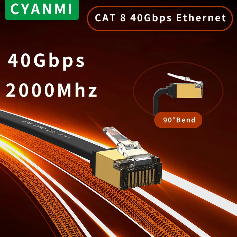 Cat 8 Ethernet Cable supports bandwidth up to 2000MHz and 40Gbps data transmission speed, ensuring stable network speed for you to online gaming, surf the Internet, online HD video streaming, upload, download, and more.