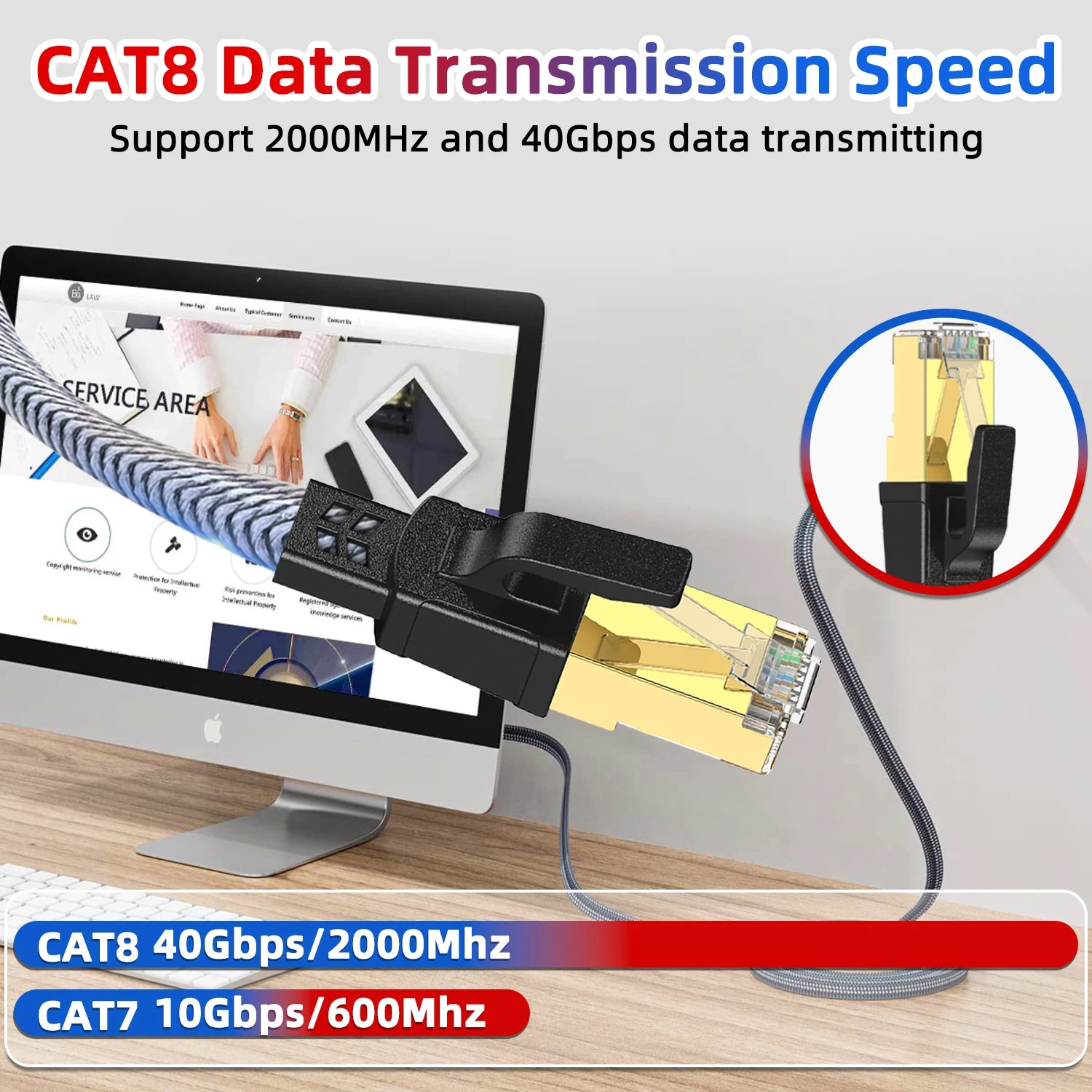 HENGSUR CAT8 Ethernet Cable is the more powerful, advanced ethernet cable available and boasts higher data transfer rates than Cat7 cables. Cat8 nylon braided flat wire has been upgraded in all aspects, whether it is signal propagation speed, stability, wear resistance and other aspects of the value has been steadily improved.Both in the game, work is a very good choice. Cat-8 Ethernet patch cables backward compatible with Cat5, Cat5E, Cat6, Cat6A and Cat7 equipment.Don't worry about mismatches with your existing cable interfaces.