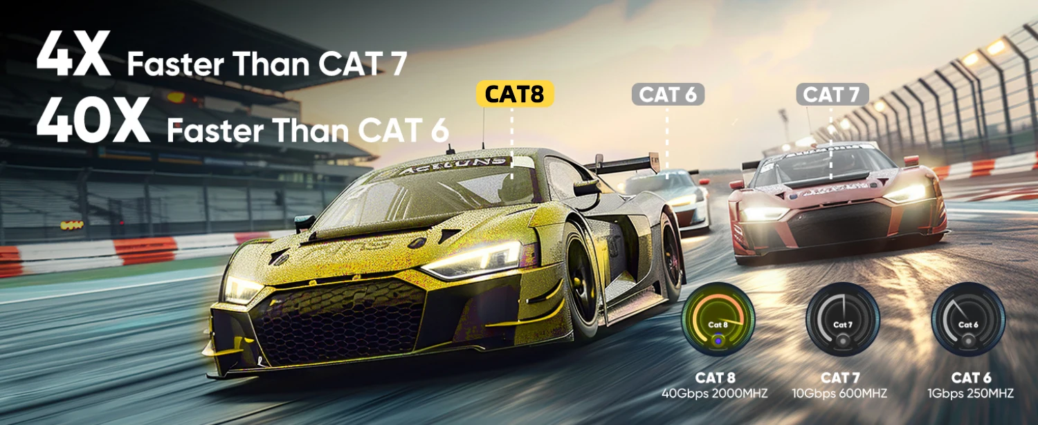 LIXDA ethernet cable Cat 8 support bandwidth up to 2000MHZ and 40Gbps data transmitting speed,faster than Cat7,Cat6,Cat6a,Cat6e,Cat5,Cat5e. Cat8 network cable can reduce any signal interference to the full extent. Allow you to stream HD videos, music, surf the net, play games at Hyper Speed.