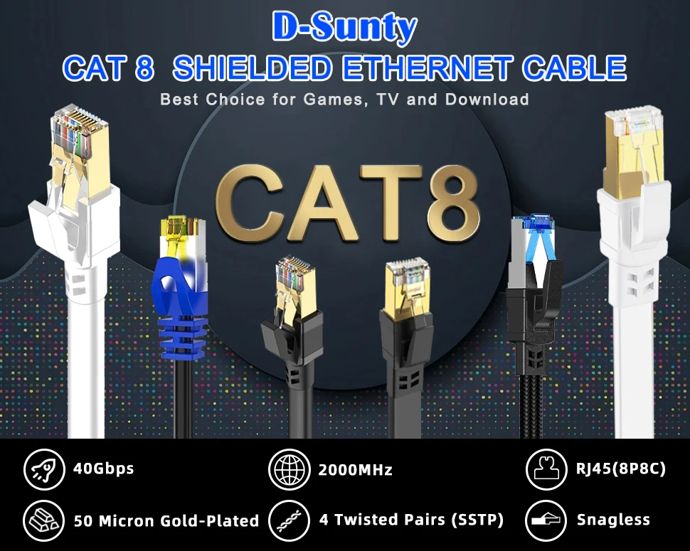 CAT8 is a lot faster and stable in data transfer when compared with other CAT 7&CAT 6 Ethernet cables. All Cat8 cables passed a professional Cable Analysis test. It is suitable for small or middle enterprise LANs. Also suitable for AI smart products that require a high speed & high-performance network.