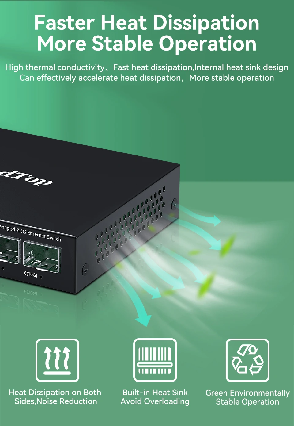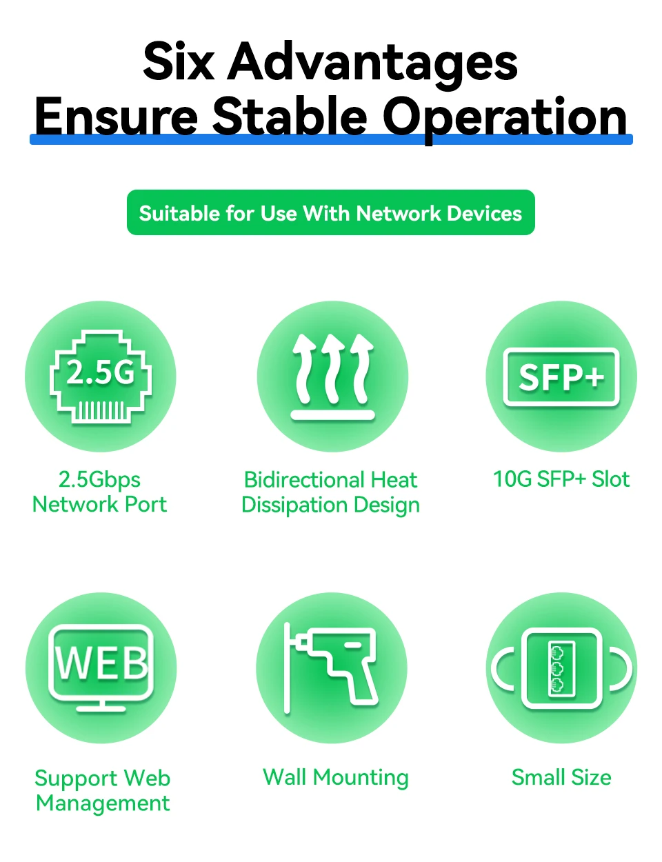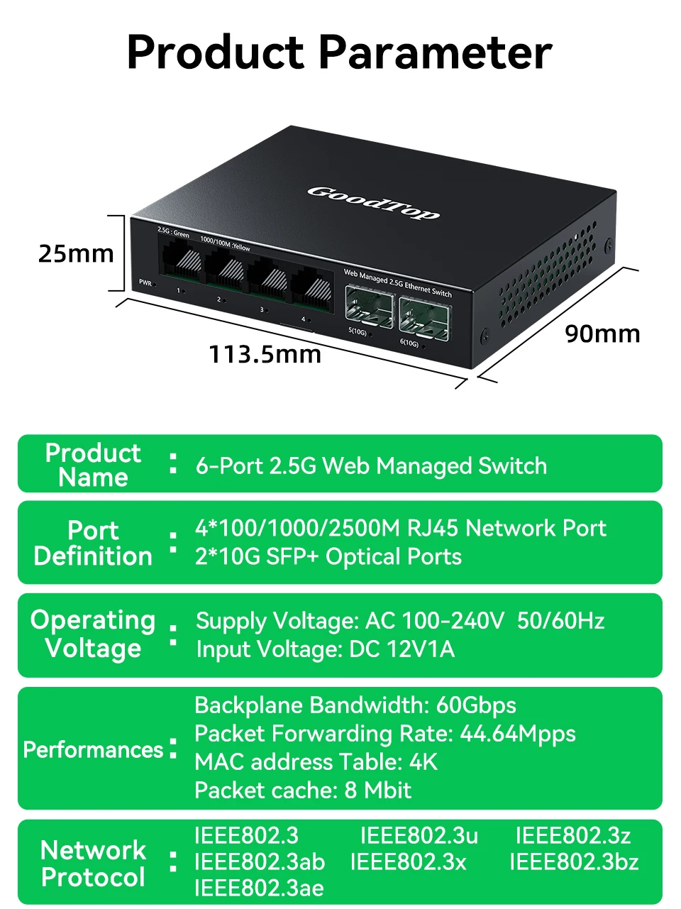 10G SFP+ Port: Supports 10M/100M/1G/2.5G/10G