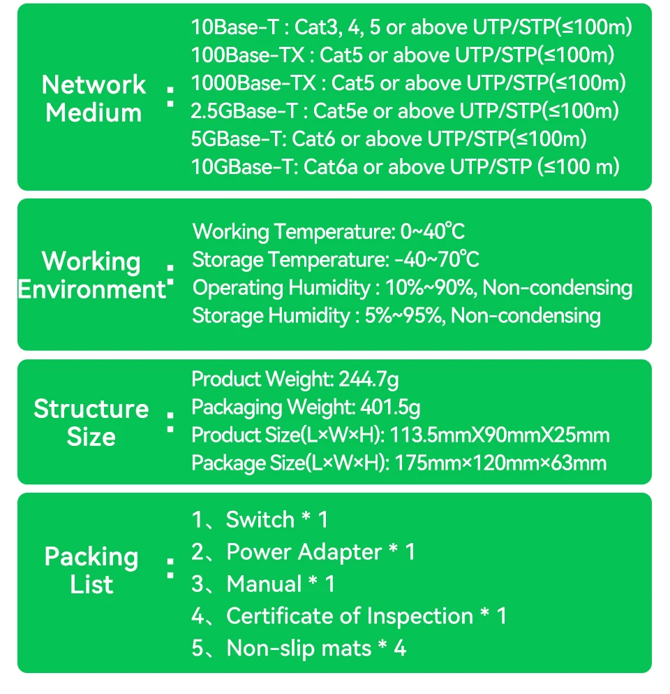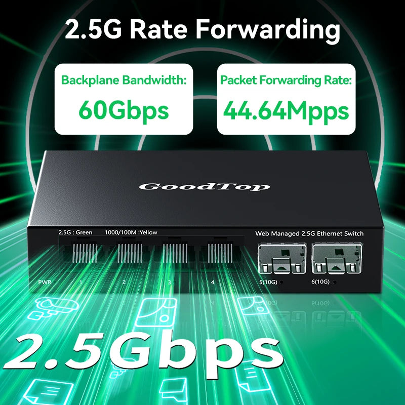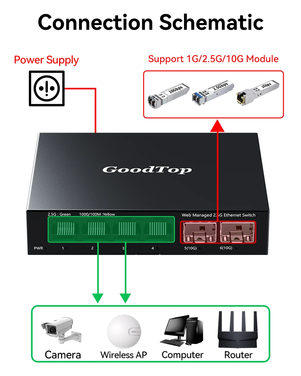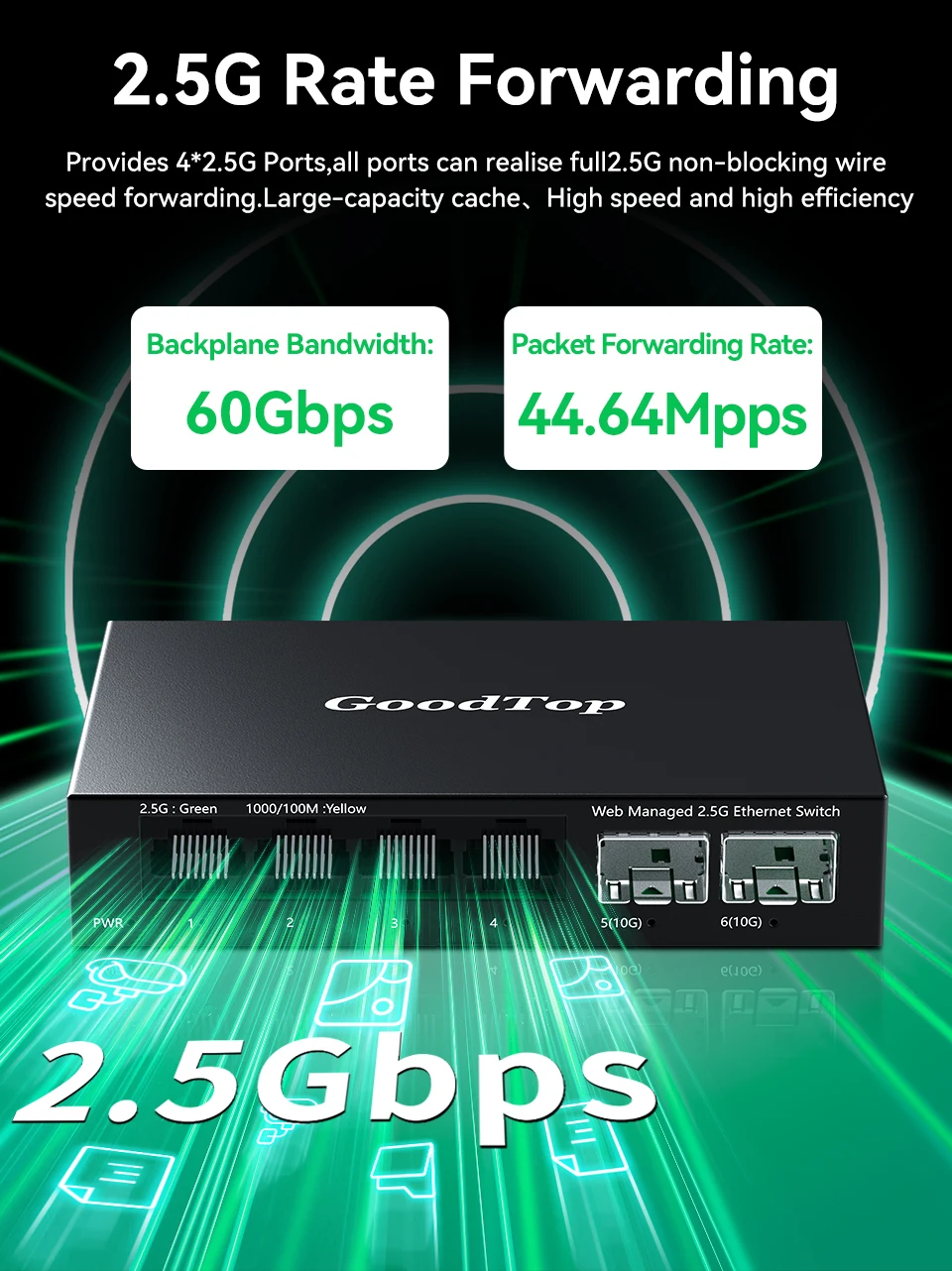 10G SFP+ Port: Supports 10M/100M/1G/2.5G/10G