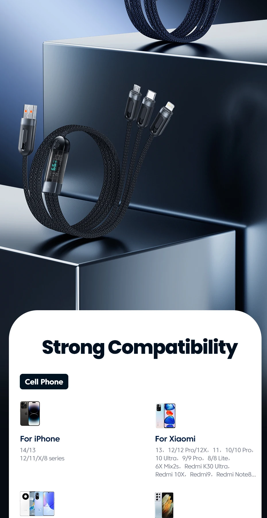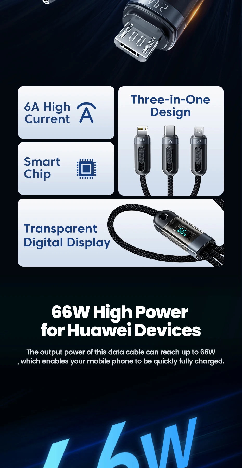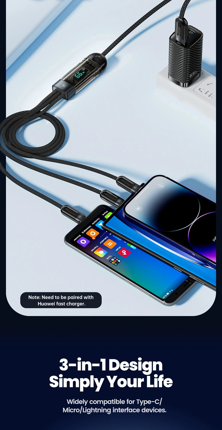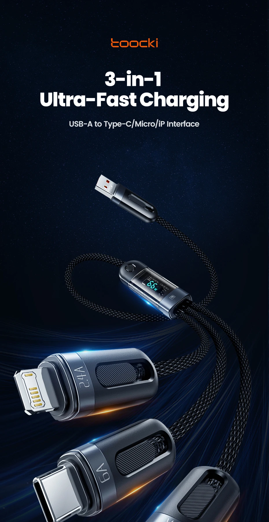 Toocki 66W 3 in 1 USB Cable Micro USB Type C Digital Display Cable For iPhone 15 14