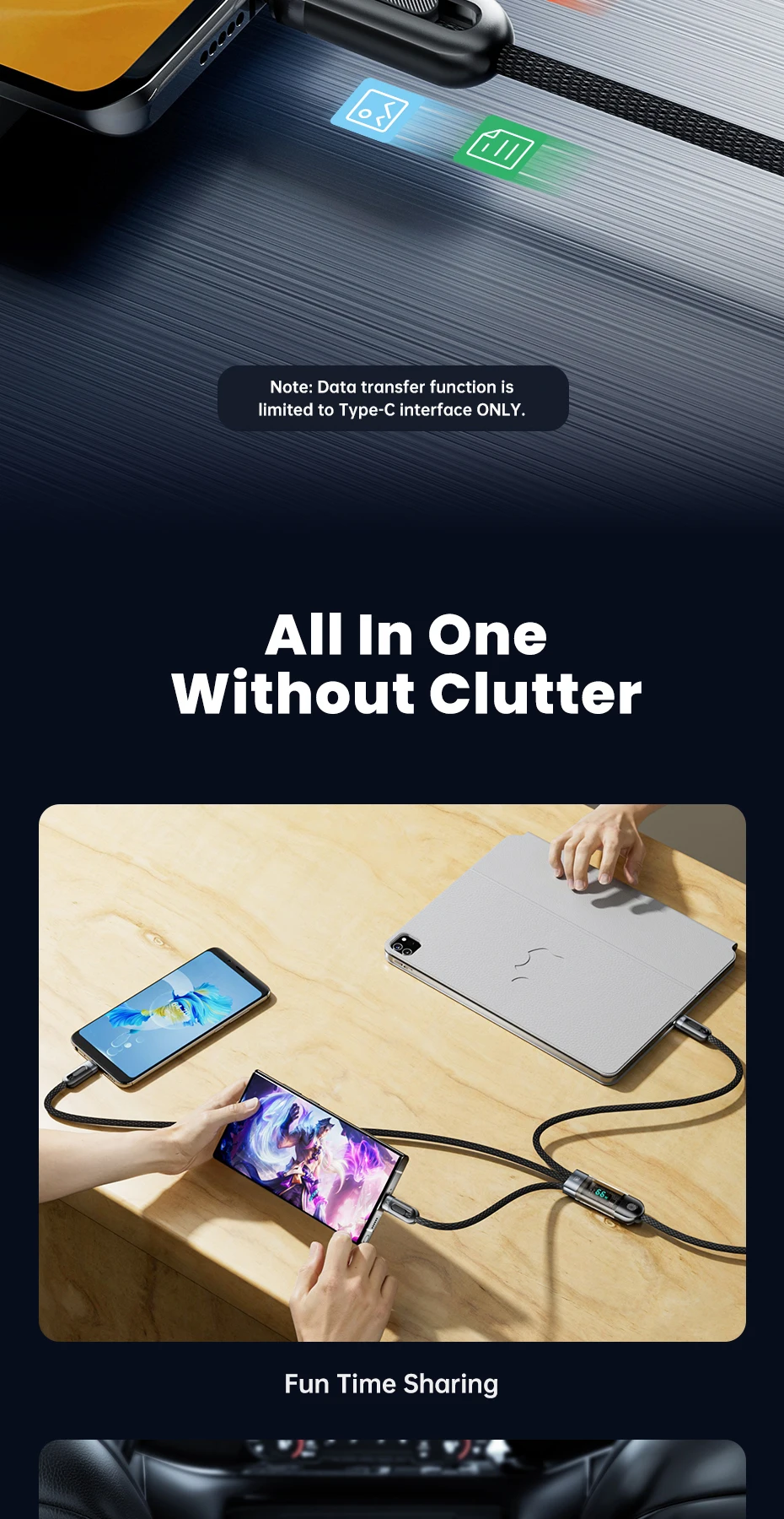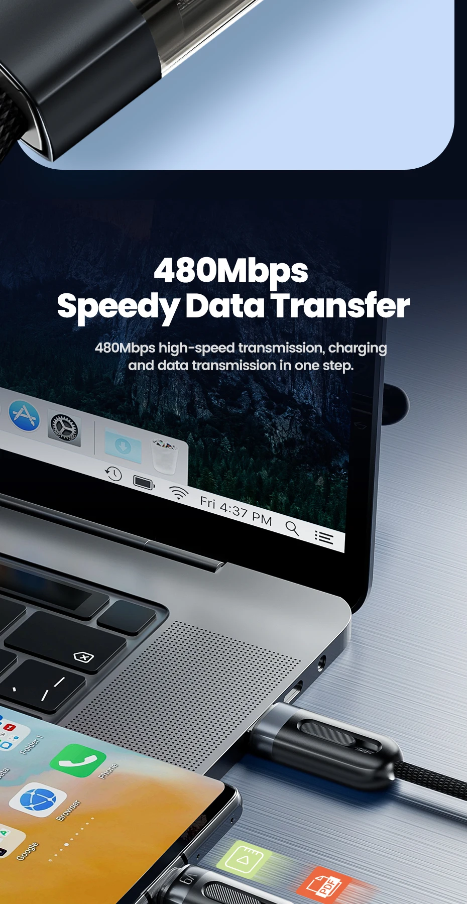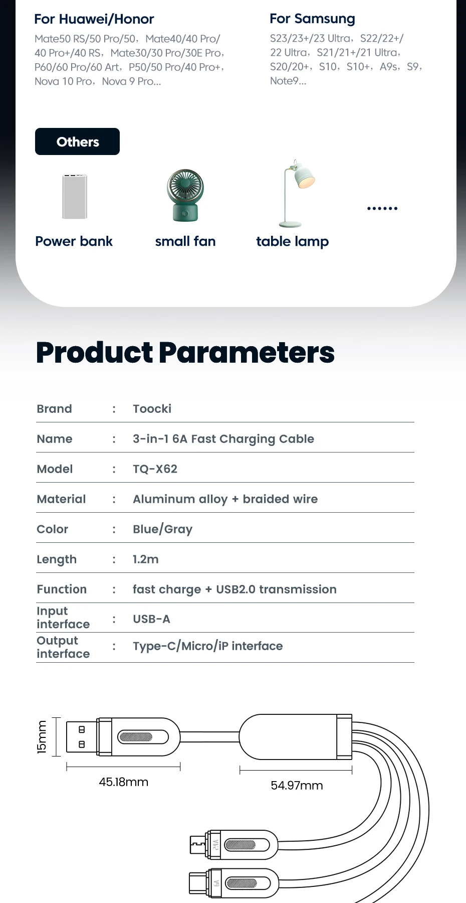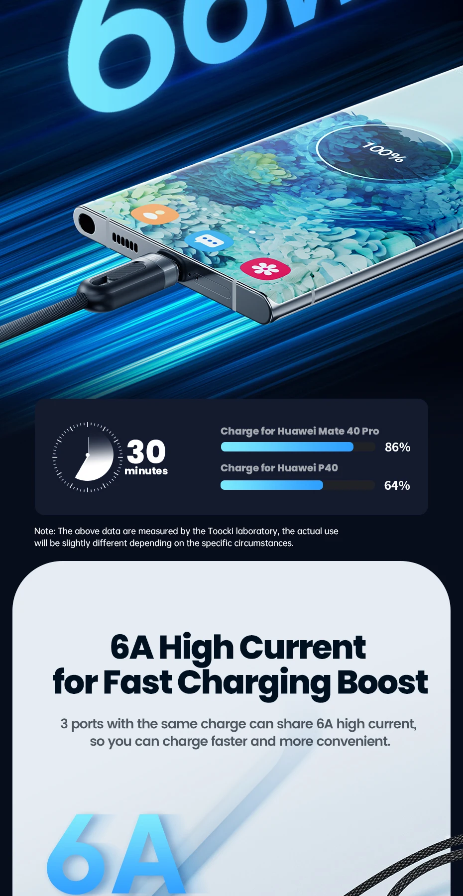 Toocki 66W 3 in 1 USB Cable Micro USB Type C Digital Display Cable For iPhone 15 14