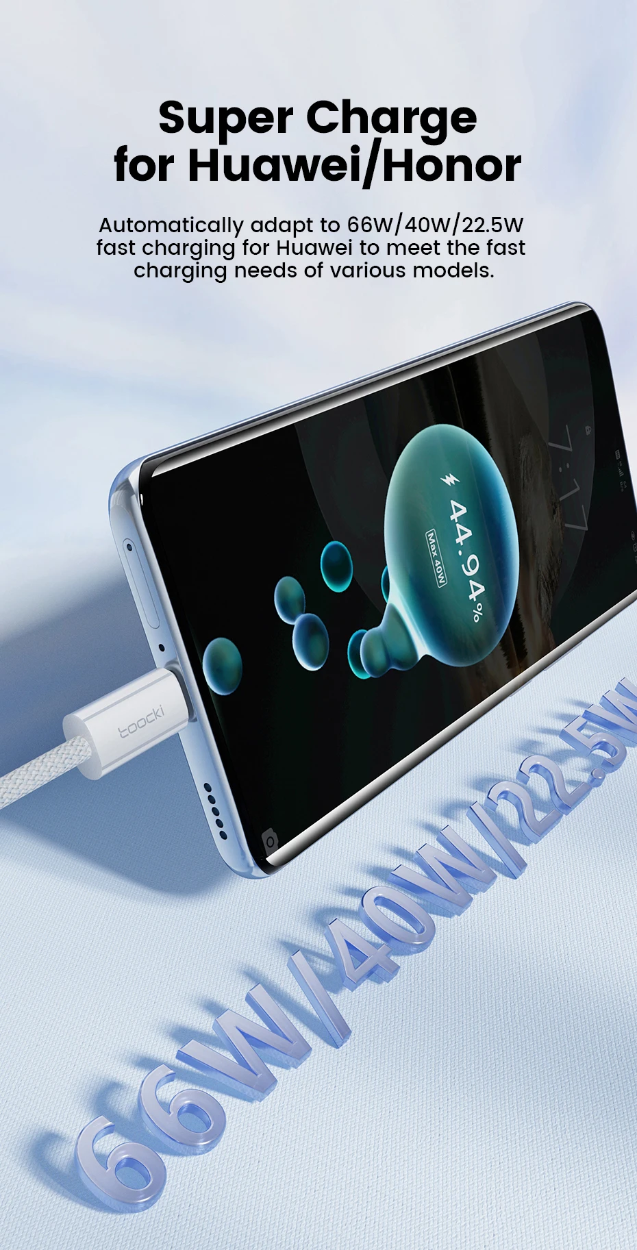 ✅Super Charge for Huawei/Honor:Automatically adapt to 66W/40W/22.5W fast charging for Huawei to meet the fast charging needs of various models.