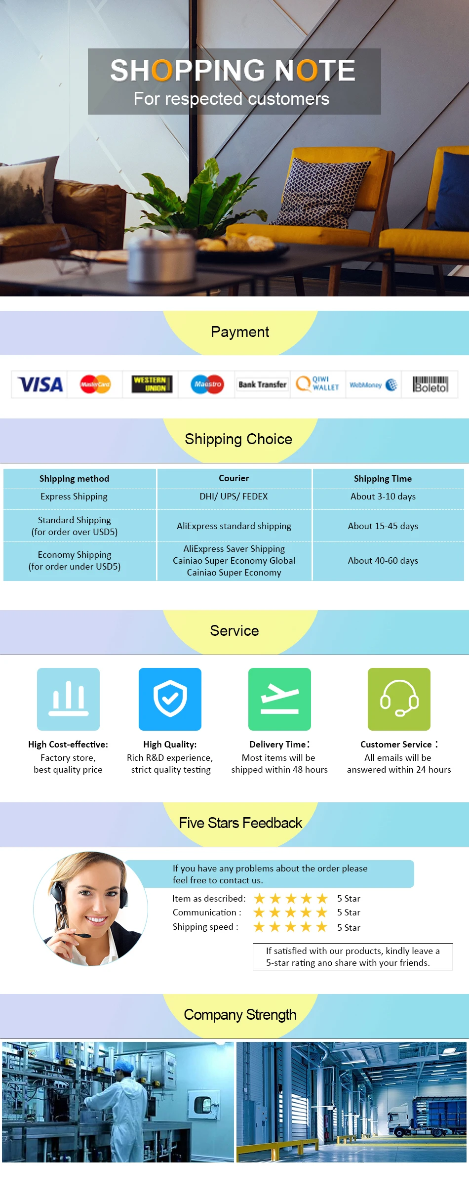 2. Due to the difference of different monitors, the picture may not reflect the actual color of the product. Thanks.