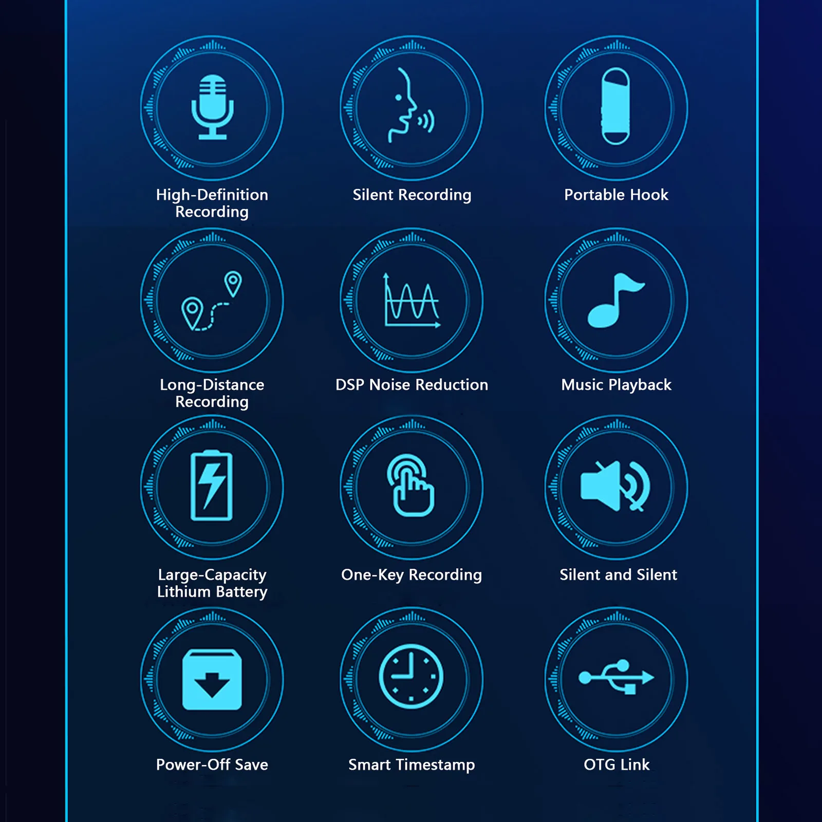 1. 360° panoramic recording: The professional recorder adopts 360° panoramic recording, and the high-sensitivity microphone achieves a more three-dimensional sound pickup effect. No matter where your recording pen is placed, it can pick up the sound.
