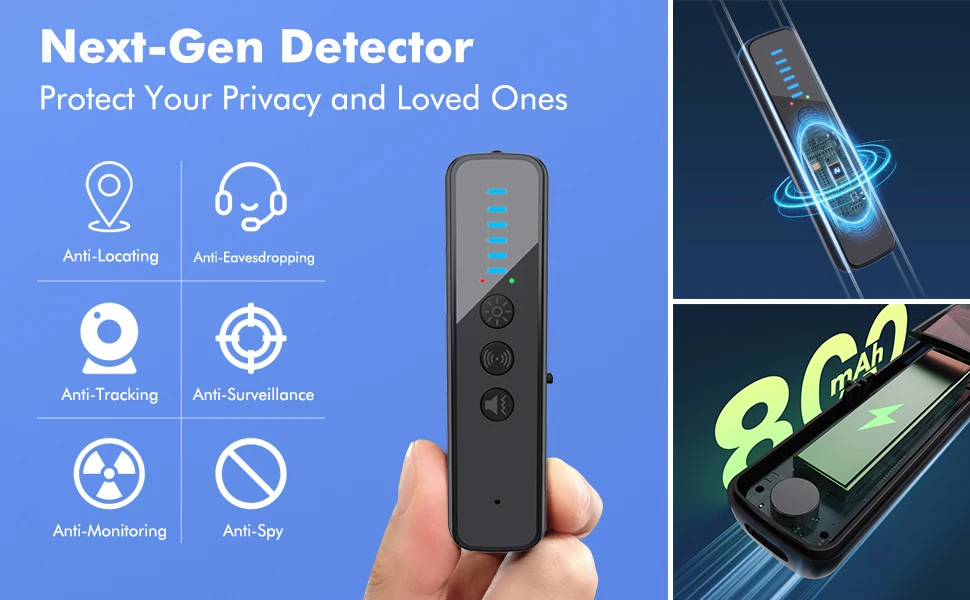 Upgraded AI-Powered Detection: Military-grade technology detects hidden cameras, listening devices, and GPS trackers with precision. Enjoy peace of mind in hotels, offices, and even your own home. Stay one step ahead of hidden threats!