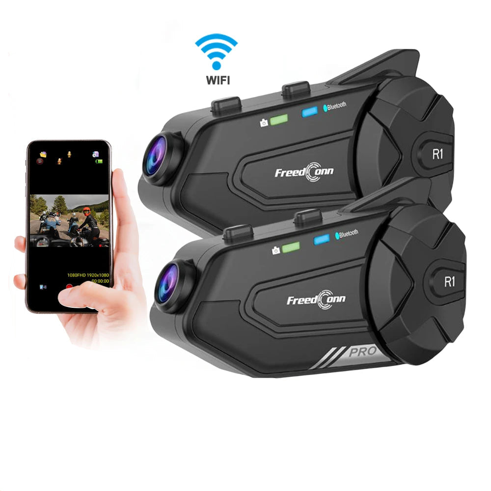 New Arrival FreedConn R1 pro Motorcycle helmet Intercom wireless Bluetooth Group 1000M 6Riders motor Headset Headphone WiFi Video Recorder