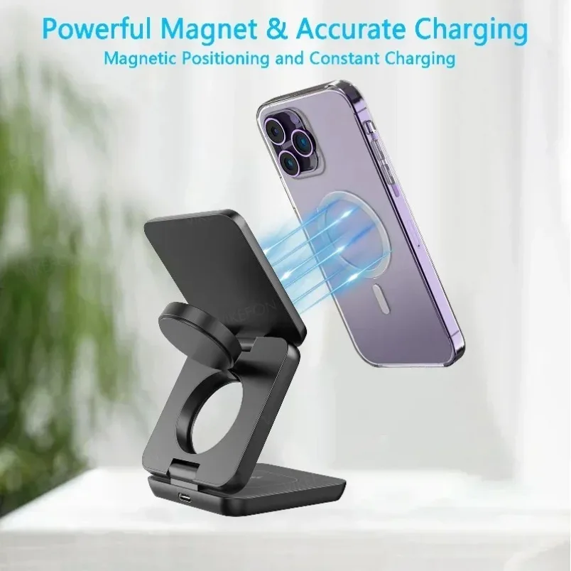 【Fast Wireless Charging Station】: This wireless charging station is specifically designed to be compatible for Apple Macsafe chargers. when use QC3.0 quick charger(not included), you can fully charge your device in just 2-3 hours. 3 in one charger for Apple Watch/iWatch/Airpods/iPhone 15 14,13,13Pro,13Pro Max,12,12 Pro,12Pro Max,11,11Pro Max,XS.