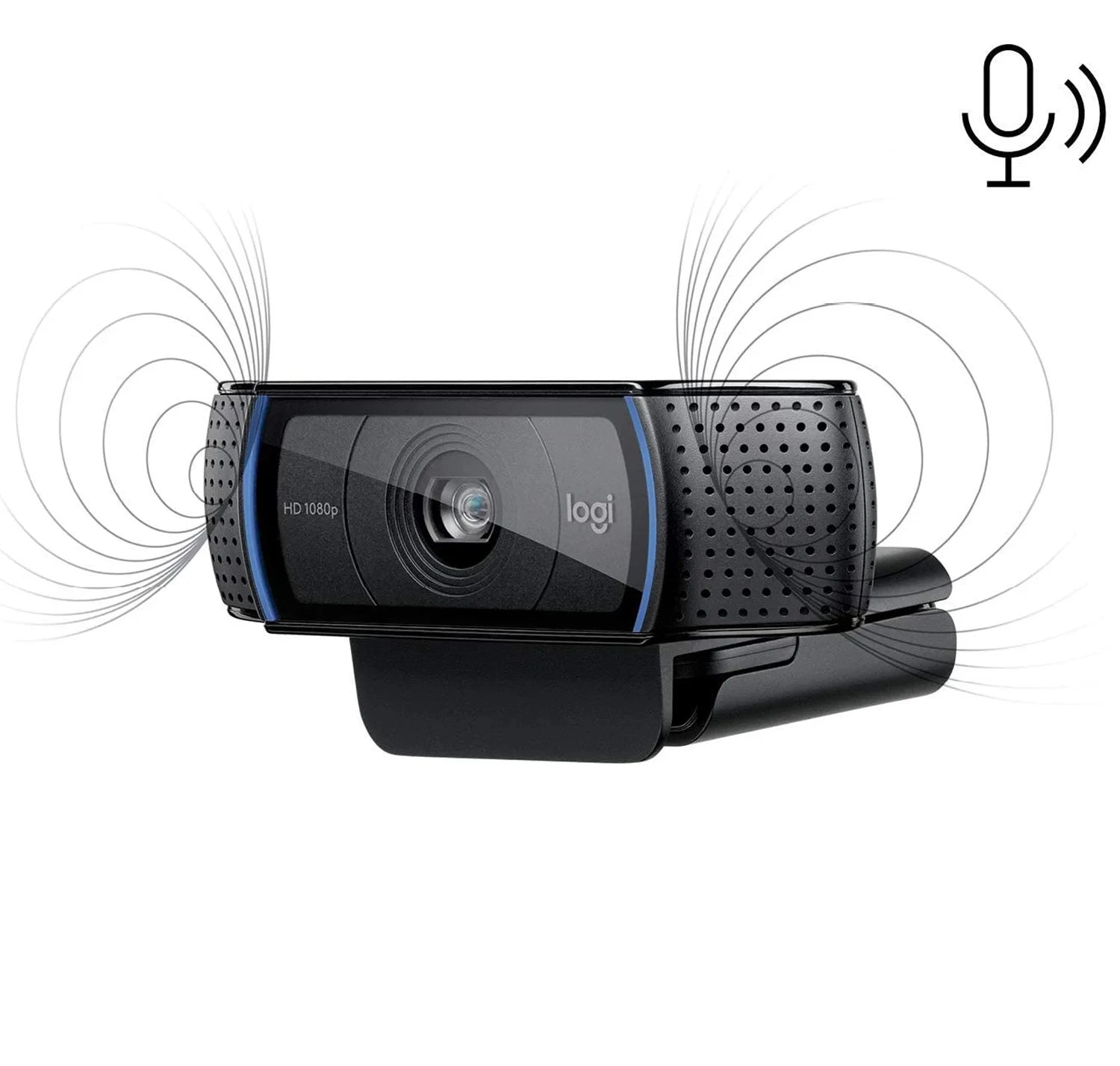 The C920e webcam features two integrated omnidirectional microphones that capture your audio clearly from up to one meter away, so your voice always sounds natural and clear.
