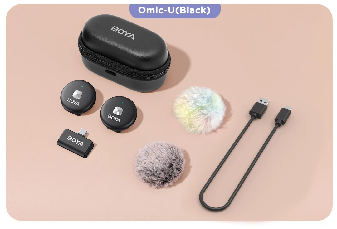 The BOYA Omic is an ultra-compact and portable 2.4GHz wireless microphone system, compatible with computers,Android/ iOs mobiledevices and more. It features automatic pairing and selectable noise cancellation, delivering broadcast-quality sound with remarkable ease ofuse.The Omic is ideal for content creation, live streaming, vlogging, mobilejournalism and much more.