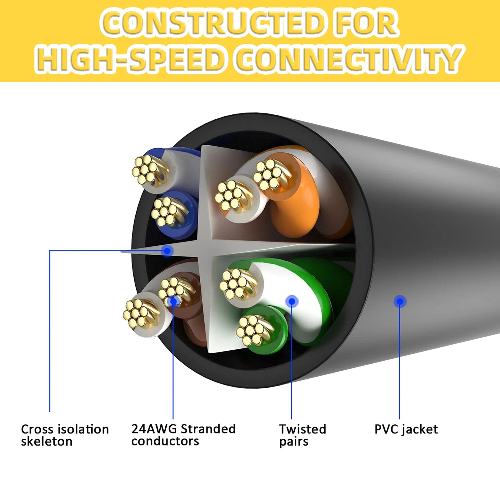 Superior Performance: Our CAT6 Ethernet cable is engineered to deliver exceptional performance, supporting Fast Ethernet (100BASE-TX) with a bandwidth of 250Mhz. It provides reliable and stable connections, ensuring efficient data transmission for all your networking needs.