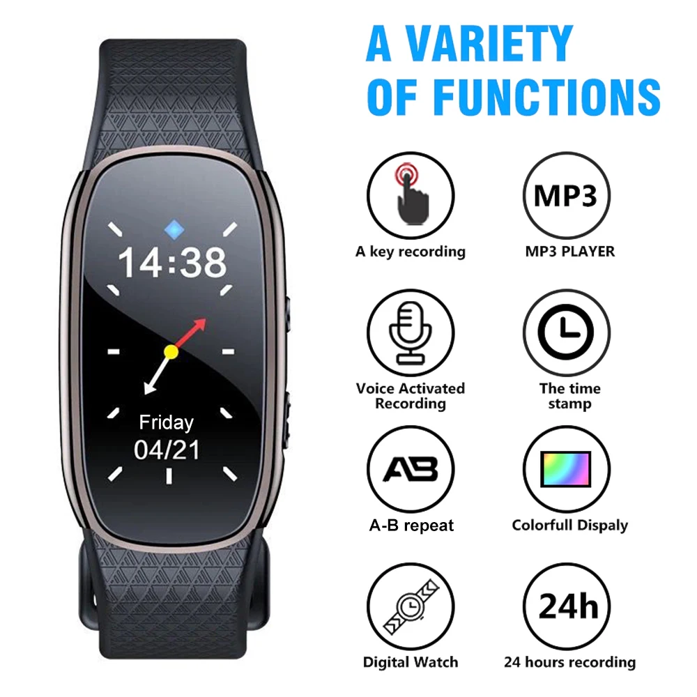 When the sound is above 30 decibels, the recorder starts recording. The recorder stops recording when the sound is less than 30 decibels, helping the user save power and memory. Sound activation recording.