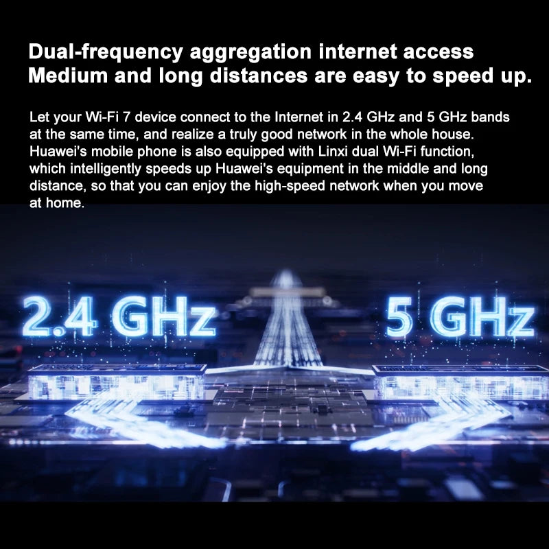 Let your Wi-Fi 7 device connect to the Internet in 2.4 GHz and 5 GHz bands at the same time, and realize a truly good network in the whole house. Huawei's mobile phone is also equipped with Linxi dual Wi-Fi function, which intelligently speeds up Huawei's equipment in the middle and long distance, so that you can enjoy the high-speed network when you move at home.