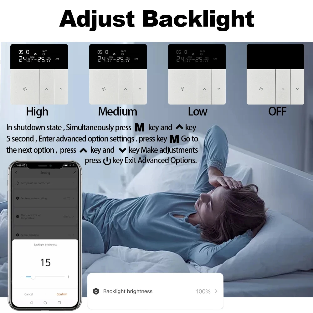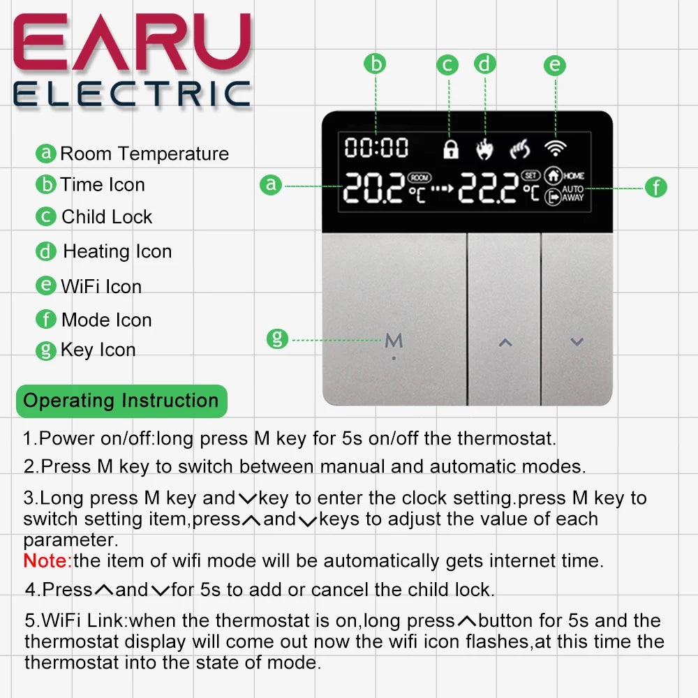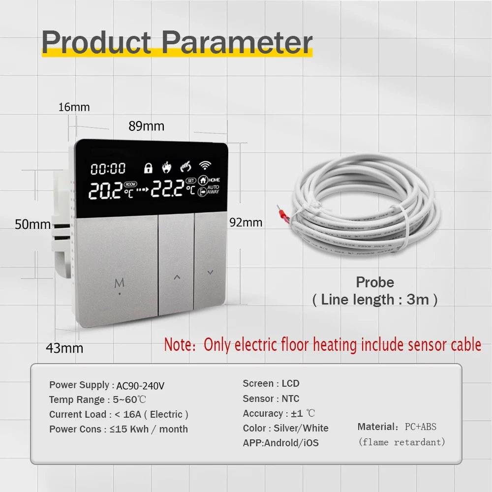 Smart water heating thermostat is suitable for indoor temperature control of household floor water heating systems or heating systems such as boilers. Can be widely used in Asia, Europe, and the United States. Perfectly blend your decoration style and support customization.