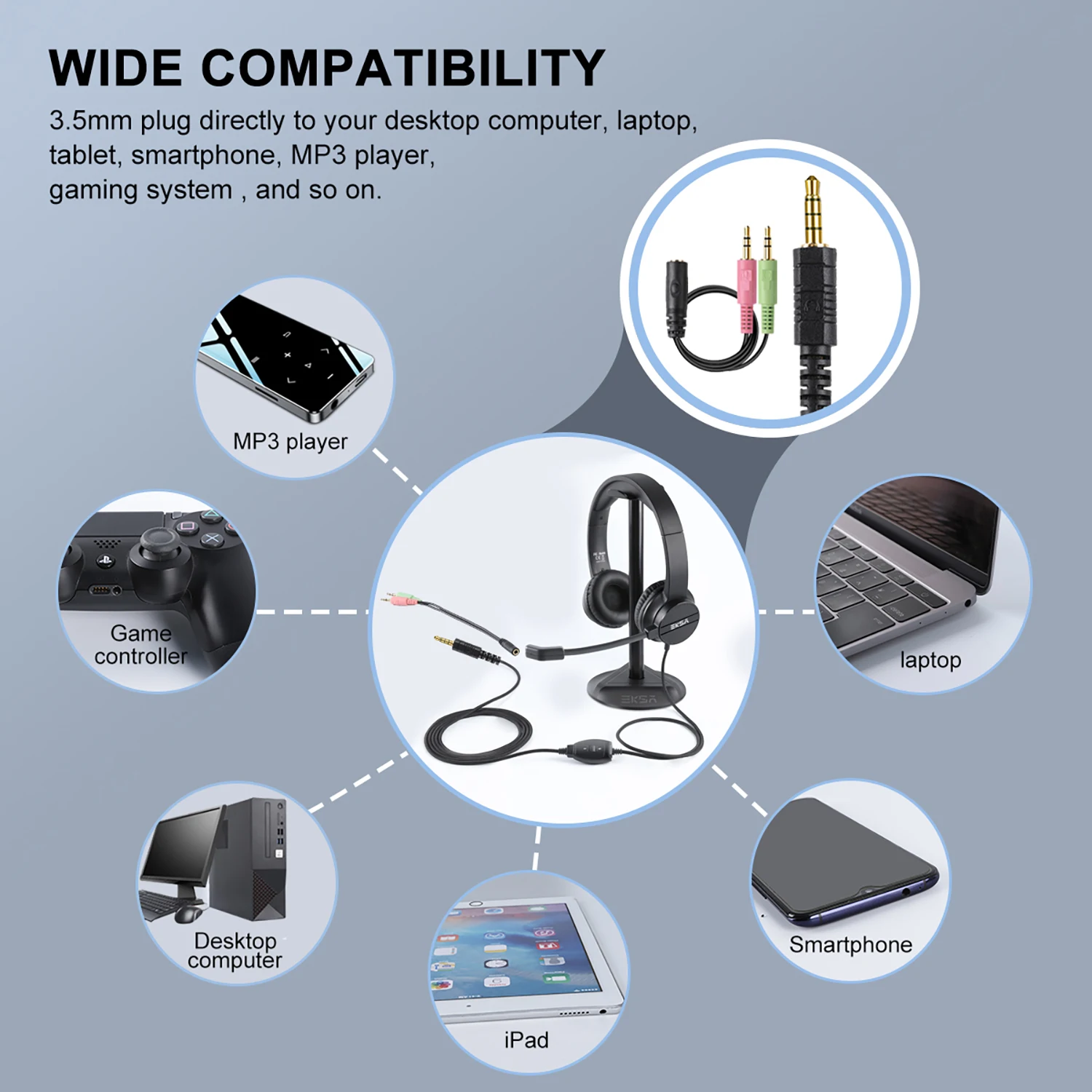 EKSA Wired Headphones with Microphone for PC/PS4/Xbox Gaming Headset Gamer 3.5mm On-Ear Call Centre/Traffic/Computer Office Headset